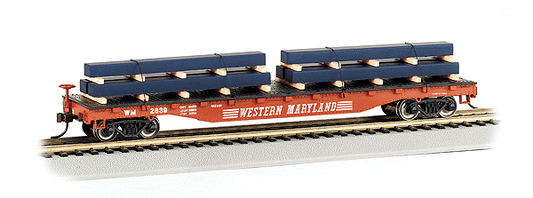 Unknown Brand Flatcar w/ Wood Load | Western Maryland #756 | N Scale | Pre-Owned