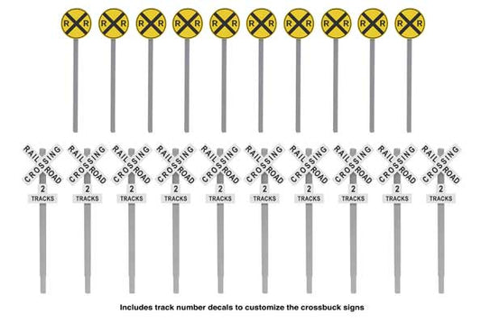 Walthers SceneMaster (949-4197) | Railroad Crossing Signs | Modern Advance Warning & Crossbucks, 10 Each | HO Scale