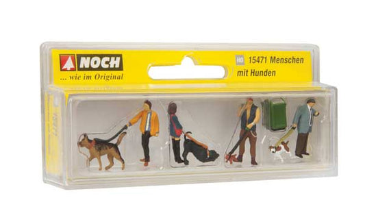 Noch Gmbh & Co - People with Dogs - 4 people/4 dogs/1 garbage can - HO Scale