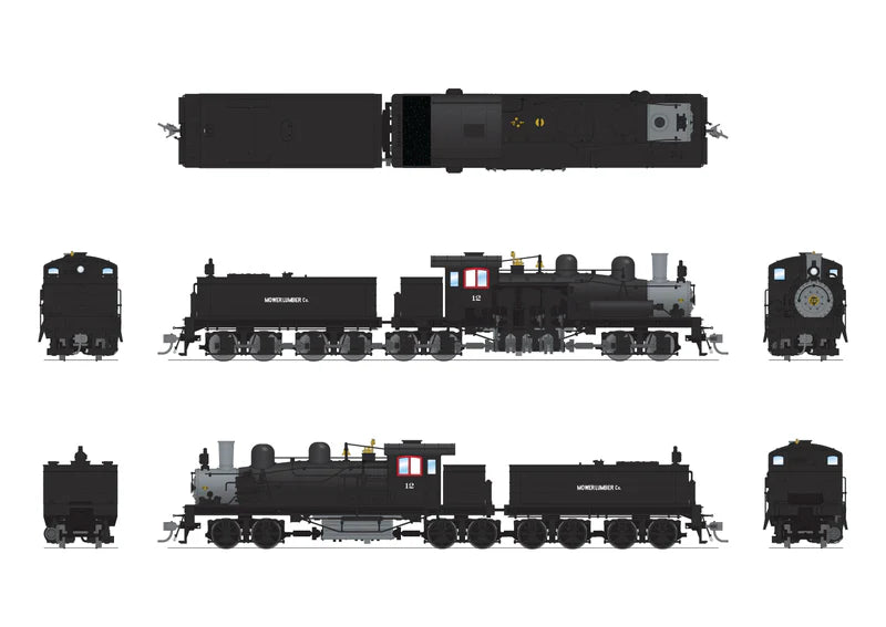 Broadway Limited Class D 4-truck Shay, Mower Lumber Co #12, Paragon4 Sound/DC/DCC, Smoke, HO