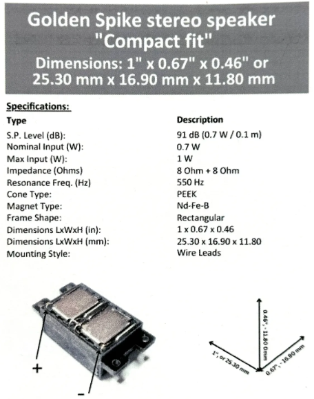 Golden Spike Stereo Speaker "Compact Fit" 8 Ohm
