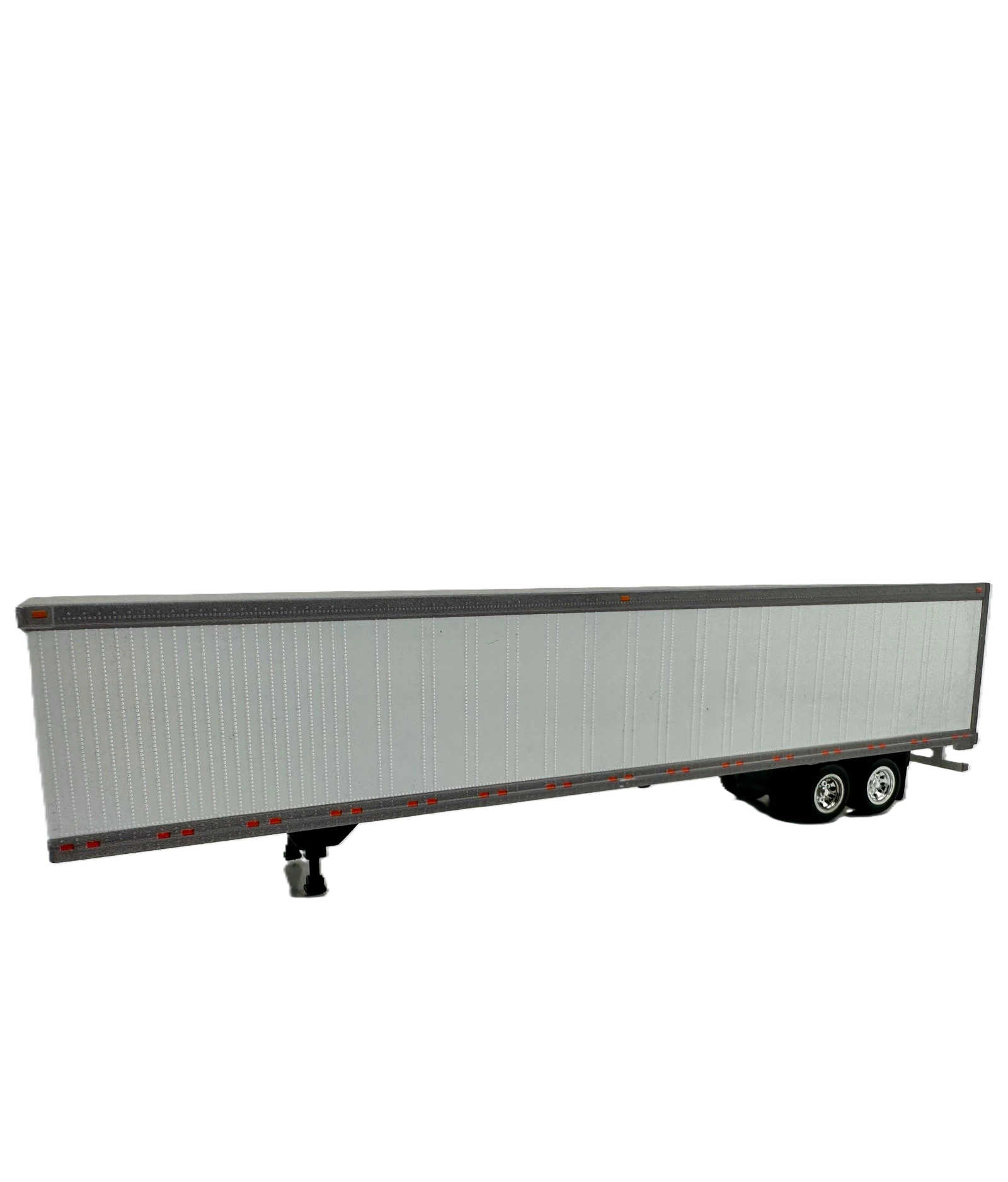 Add modern highway freight traffic to your layout with this HO Scale 53' Dry Van Trailer in a clean white scheme with silver trim and reflective safety striping. These trailers are a common sight across North America, moving everything from retail goods to intermodal containers between warehouses and distribution centers.