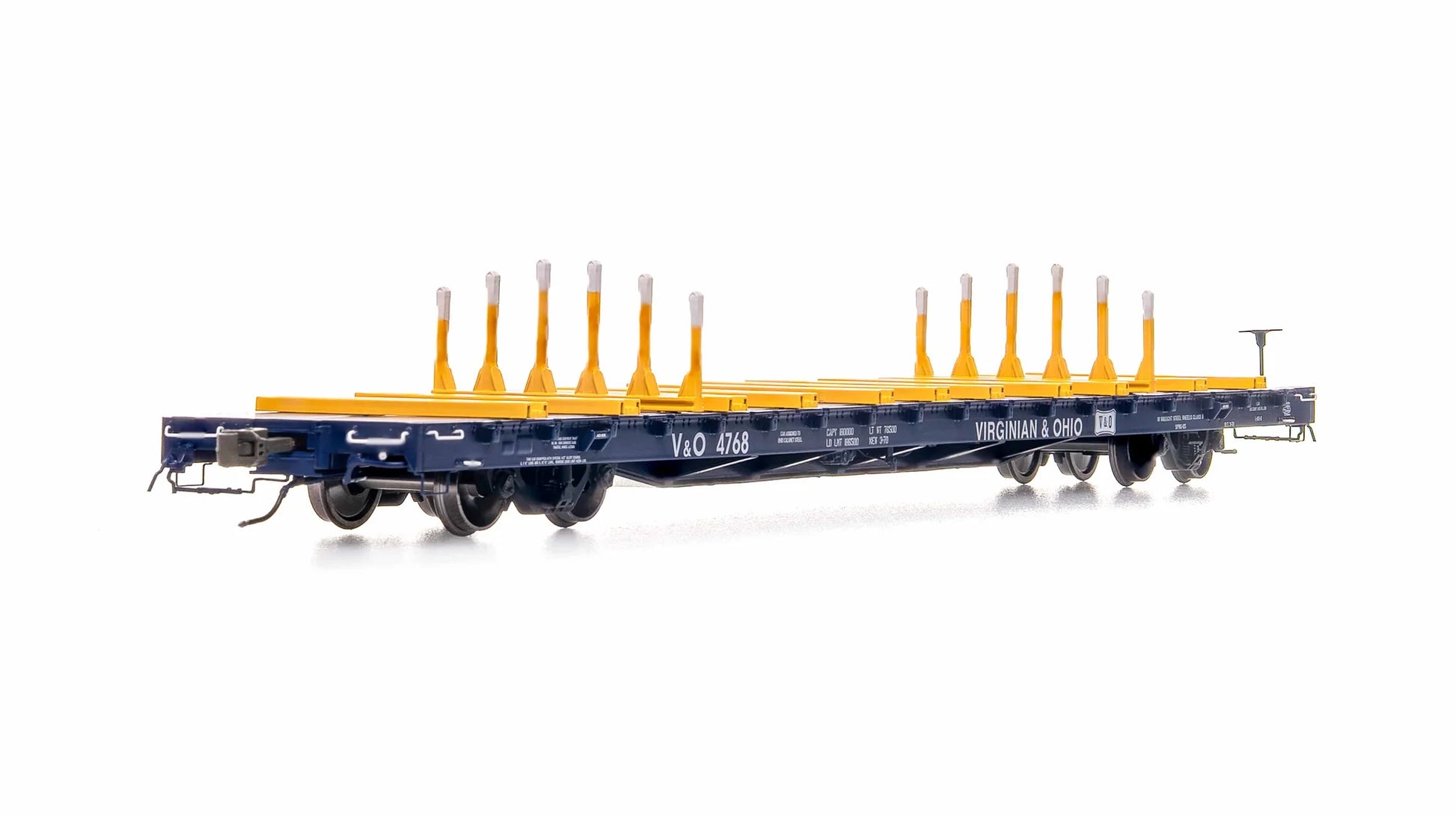 Allen McClelland's legendary Virginian and Ohio is a favorite among the freelance model railroad community, and it is a Home Shops specialty! This purpose built freight car is perfect for the Appalachian region. With the abundance of steel mills in Illinois, Indiana, Ohio, & Pennsylvania these V&O finger rack flatcars can be seen on a variety of freelance manifest trains traversing the country. The famed V&O lives on with yet another offering of a unique car from HomeShops!