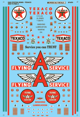 Description: Gas Station Signs - Texaco and Flying A (1949-1960) - Waterslide Decal - HO Scale