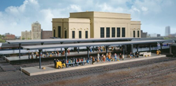 Butterfly-Style Station Platform Shelters are a great addition to the Walthers Cornerstone HO Scale Union Station kit and other railroad passenger depots. For passengers at any station the platform was the first and last stop for every passenger. Tall walkways allowed passengers fast and easy access to and from trains. The hard surface made it easy to wheel baggage and mail carts into place, as well as supplies for the diner or other cars. And since no one liked being too wet or warm, a roof provided some protection from the elements. As an alternate to costly train sheds, North American railroads tried three distinct styles of station platforms including the Busch, Umbrella and Butterfly types. Of these, the Butterfly (so named because of its up-swept, wing-shaped roof) was cheaper to build and eliminated the maintenance headaches of other designs. Providing plenty of ventilation for engine exhaust and just enough protection from the sun and rain for passengers, Butterfly platforms gained widespread popularity early in the 20th century.